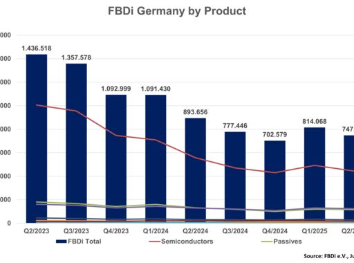 Der Umsatz der Elektronik-Bauelemente-Distribution (gemäß FBDi e.V.) ging im zweiten Quartal 2025 um knapp 8% zurück und verlor zum Vorjahresquartal 16,3%. Auch der Auftragseingang gibt gegenüber Q1 beinahe um 9% nach. Die Aussichten bleiben unsicher.